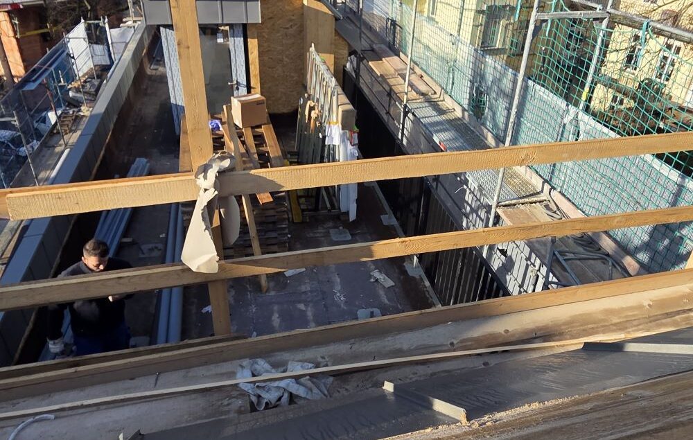 Auf dem Grundstück entstehen derzeit zwei exklusive Stadtvillen mit hochwertiger Ausstattung und moderner Architektur.